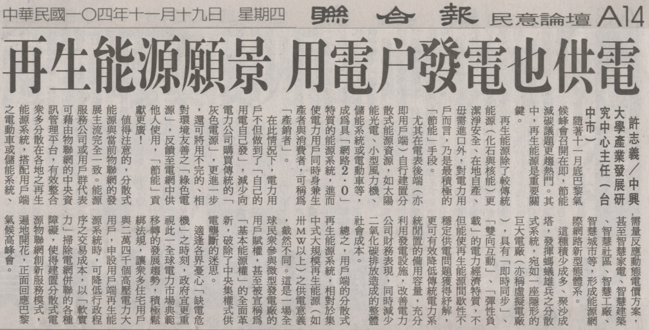 稿源:2015-11-19/聯合報/A14/許志義/中興大學產業發展研究中心主任/民意論壇
