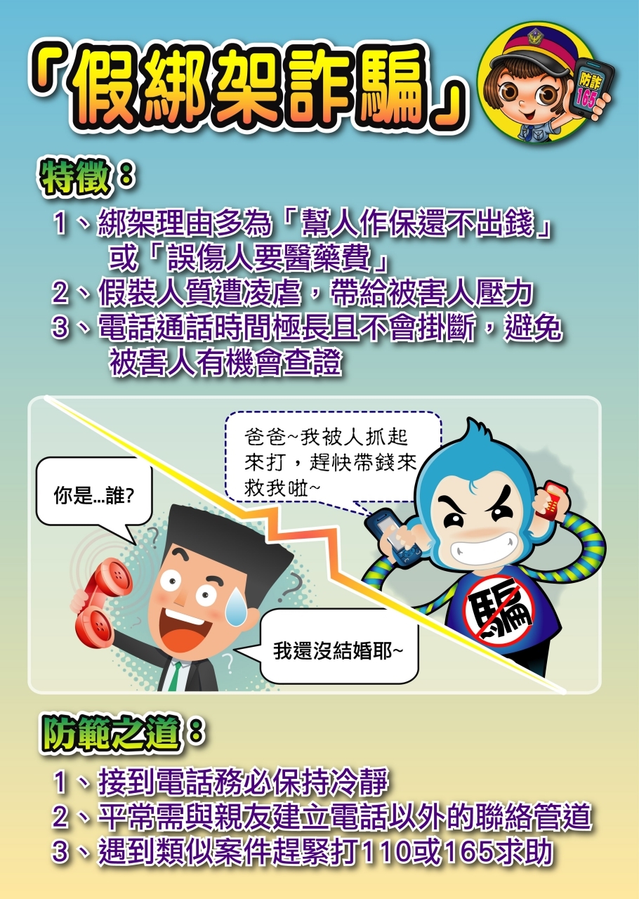 - 為杜絕師生遭受詐騙情事,請善加運用反詐騙宣導單,針對近期常見詐騙類型及手法加強宣導。