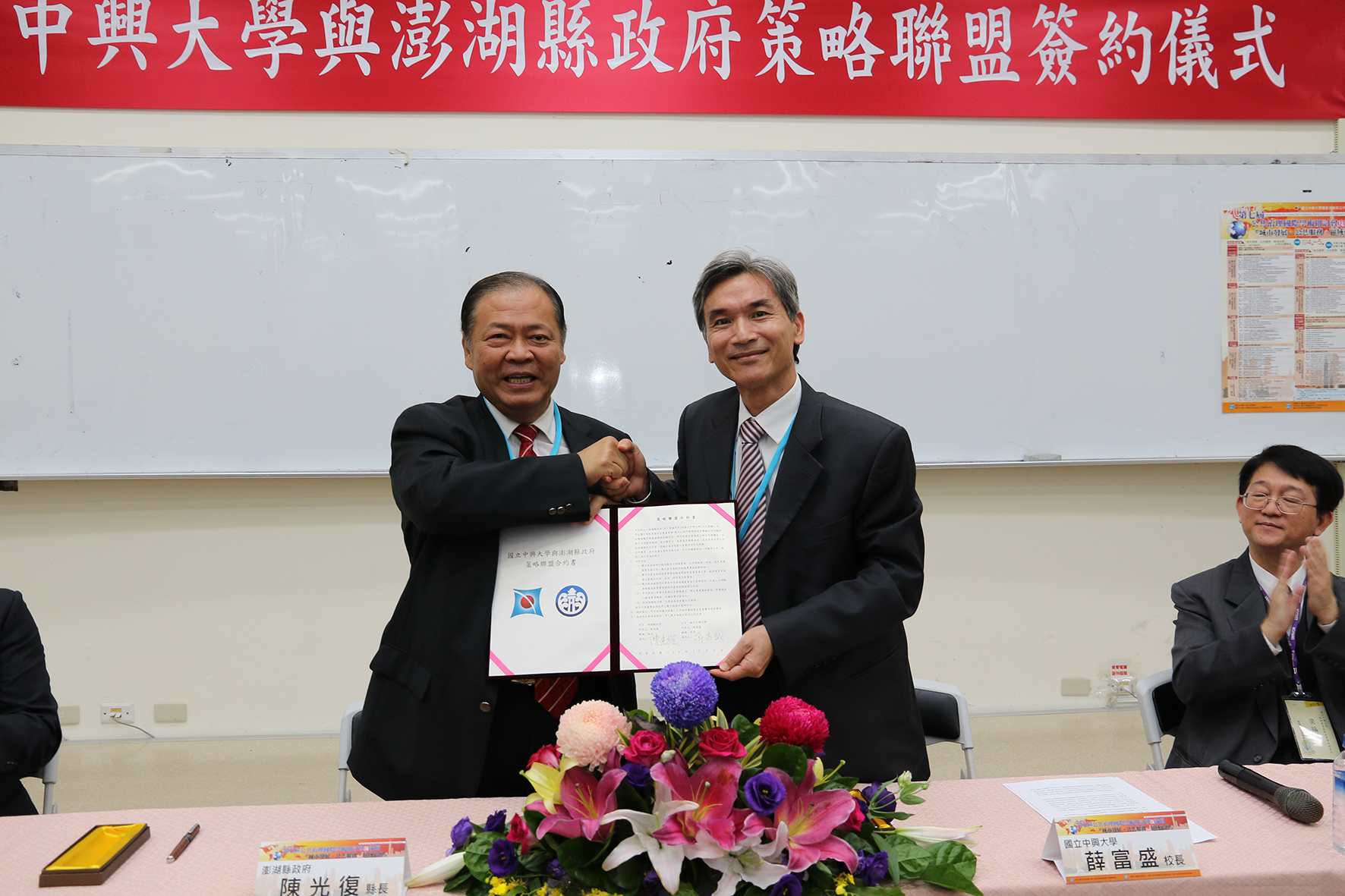 澎湖縣長陳光復指出,期盼透過與興大的合作讓澎湖縣的教育資源、冬季觀光、環境景觀、海洋文化、農漁產業、生態永續、在地人文及弱勢照顧等各施政面向,快速躍升。而縣府也秉持相互合作的精神,提供相關的資源以增進雙方學術與實務經驗的交流,進一步推動澎湖縣的有機農業發展、水產漁業繁殖、綠能環保休閒產業、文創產業、文化資產保存、優質公務人力的培訓及研發計畫撰擬能力。