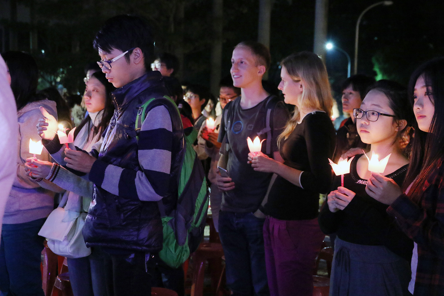 泰國學生用舞蹈表達對泰皇的敬意。 參與學生點亮手中的燭火,在泰國歌聲中感受道地的泰國文化。 與會師長與興大泰國學生聯誼會工作人員合影。