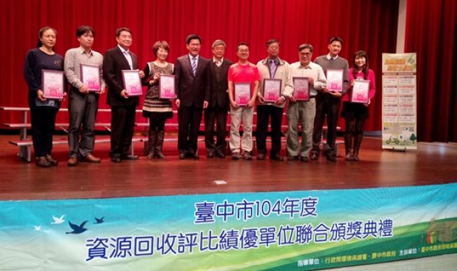 「愛回收績優組」得獎單位則有南區樹德里、和平里、北區錦平里、西區公正里、南屯區寶山里、烏日區烏日里、南里里、大里區大里里、樹王里、健民里、新社區中興里、大安區中庄里、大肚區瑞井里、沙鹿區鹿寮里、太平區宜佳里及新高里等16里辦公處。