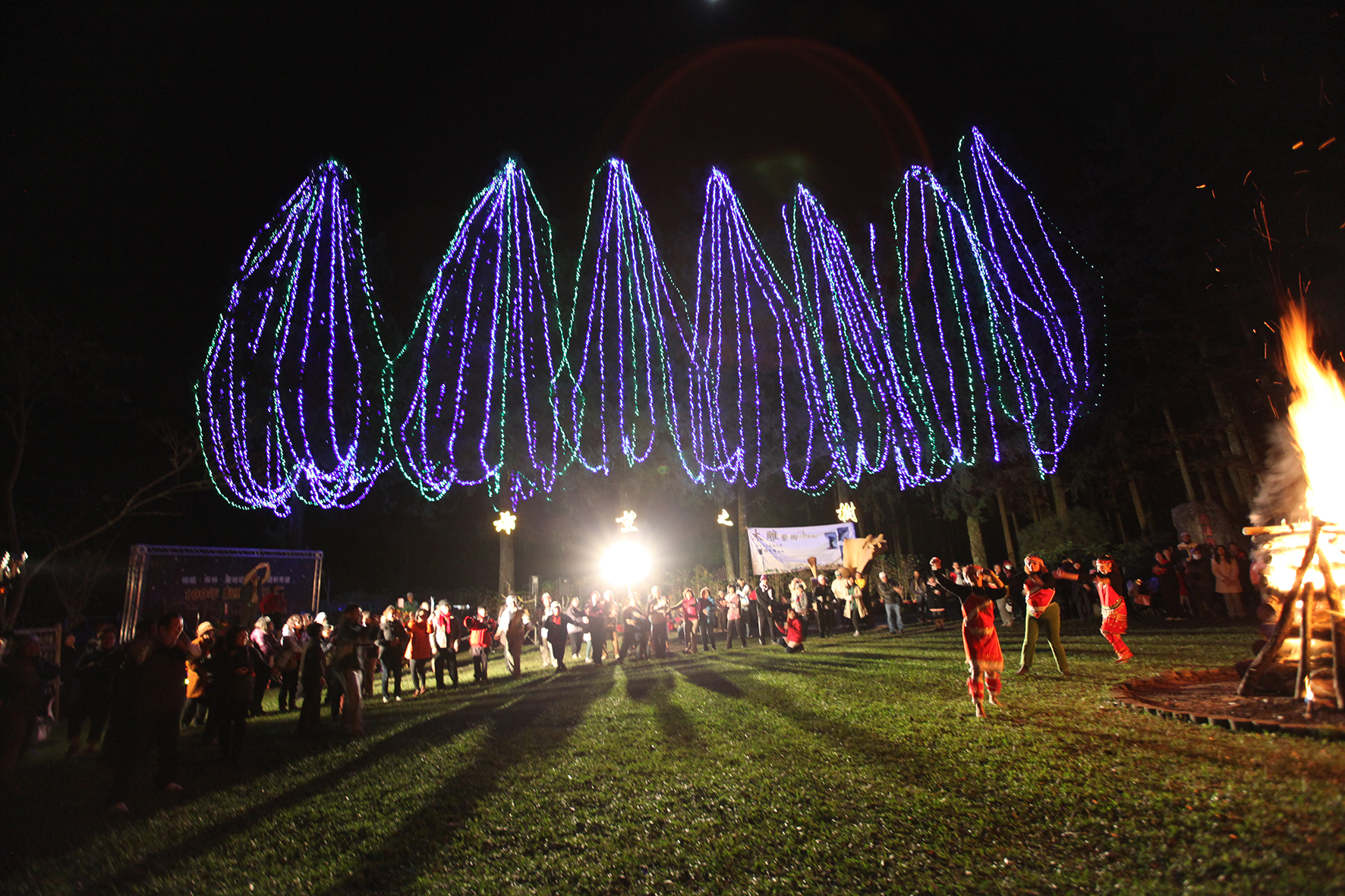 點亮惠蓀林場七棵高大台灣杉組成的希望之樹。 大草原是賞鳥的好地方。 介紹茶道文化。
