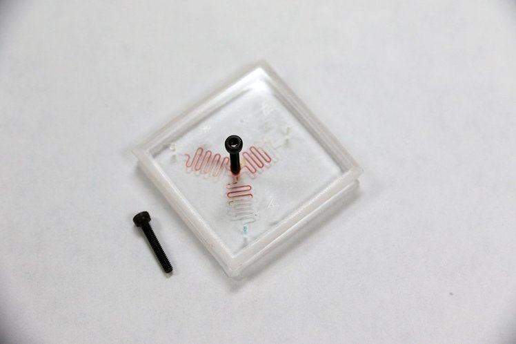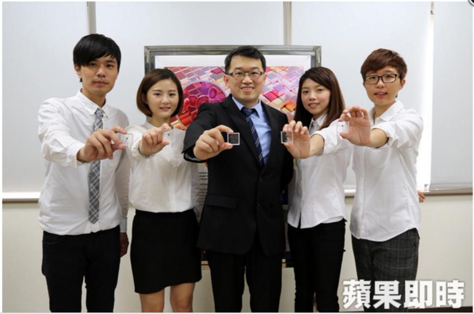 國立中興大學生醫工程所助理教授陳建甫及研發團隊今(7)日宣布,利用一般生活可見的2mm不銹鋼螺絲,當成驅動液體的動力來源,在3.5公分正方的透明塑膠片上,結合塑膠精密加工與材料表面改質技術,並運用血球凝血反應特性,成功完成一便宜可攜式快速血型檢測元件。 此項成果已於2015年12月刊登於英國皇家化學學會期刊Lab on a Chip,並獲選為該期背頁封面。至於相關成果,該研發團隊目前已提出專利申請,下一階段將積極尋求與廠商合作,進行相關定點照護,及體外檢測元件的開發。