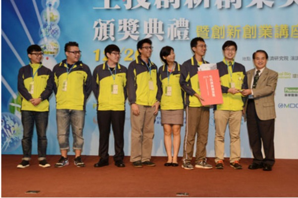 生技創新創業起飛!教育部於103年2月起推動的「生技產業創新創業人才培育計畫」已邁入第二屆,透過全國大專院校13個推動中心甄選的百餘隊生技創新創業++隊伍中脫穎而出的「農業生技」及「醫藥生技」兩組別共35個團隊,於12月25日由計畫總辦公室舉辦創新創業全國競賽,比賽結果於今日(12月26日)於中華經濟研究院演講廳揭曉並舉辦頒獎典禮,經過激烈的角逐,共選出農業生技與醫藥生技組別金、銀、銅獎及佳作獎共12支創新創業團隊,農業生技組金獎由國立臺灣大學「Nano Weapon Theranostics」團隊以「應用腫瘤靶向奈米藥物技術發展動物癌症治療藥物」獲得;銀獎由國立中興大學「吾堅稻」團隊以「微生物肥料」獲得;銅獎由國立中興大學「FRUGA PAPAYA ONE」團隊以「FRUGA PAPAYA ONE-新型木瓜」獲得;醫藥生技組金獎由國立交通大學的牽裡眼團隊以「拋棄式磁場牽引式消化道內視鏡」獲得,銀獎由國立成功大學「EXCEL Life」團隊以「主動式真皮再生引導平台」獲得;銅獎由東海大學「TRACK」團隊以「Cell Migration Chip」獲得。