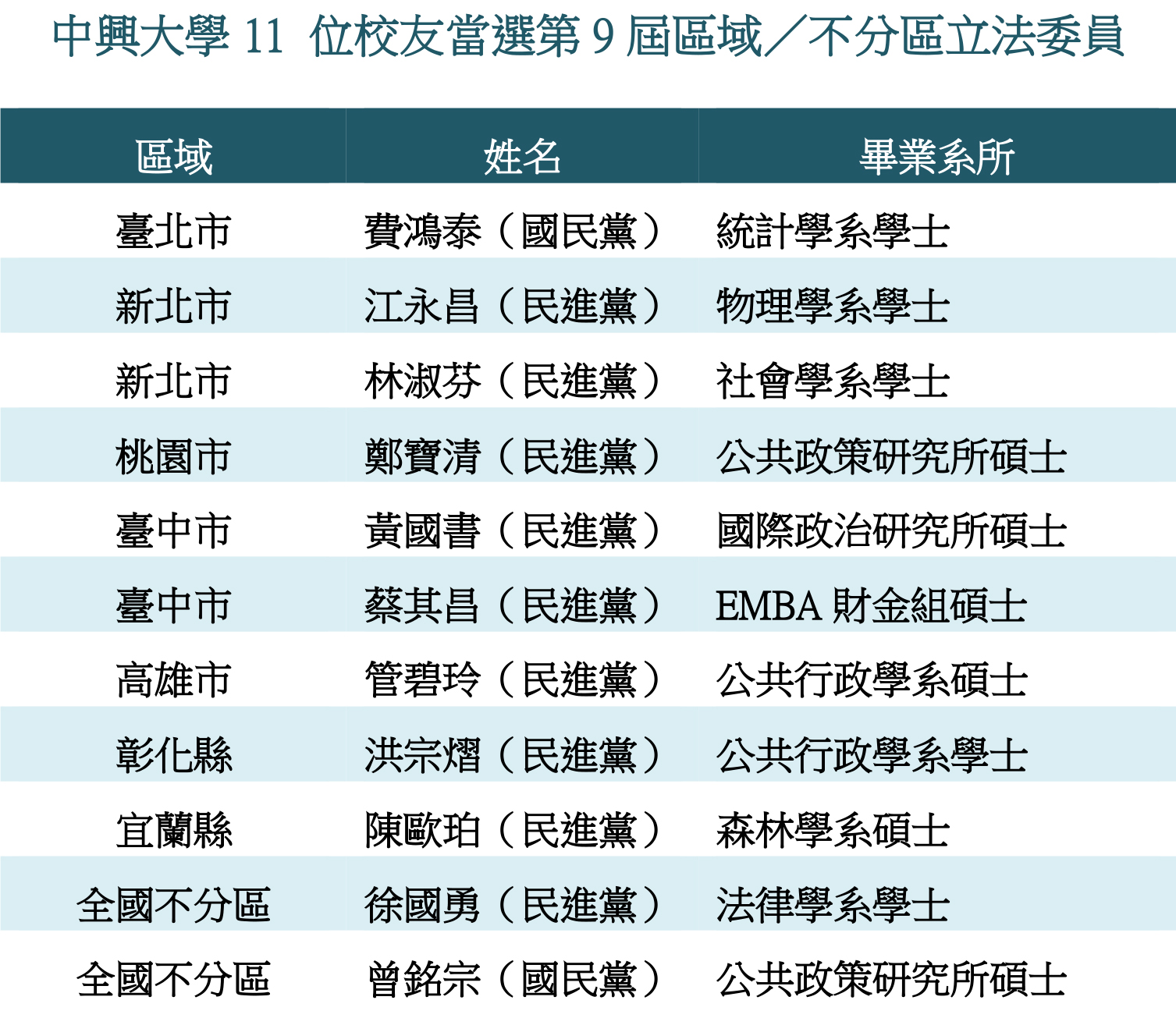 【媒體公關組】恭賀中興大學11位校友當選第9屆區域/不分區立法委員