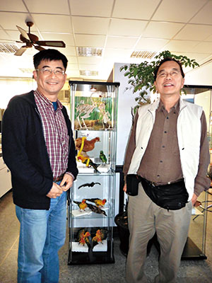陳志峰的研究對象是中興大學畜牧場中飼養的3000多隻雞,他從學生時代師承李淵百教授開始與雞為伍,至今已30多年,除了利用遺傳工程技術選育出優良的抗病品種外,近年來更在美國南加州大學教授鍾正明的協助下,在中興大學成立了「鳥禽類演化與基因體研究中心」(Center for integrative and Evolutionary Galliformes Genomics, iEGG),致力以鳥禽做為模式動物,解開生物演化之謎。