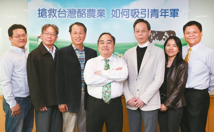 「搶救台灣酪農業 如何吸引青年軍」論壇昨天在張榮發基金會舉行,會議由聯合報執行副總編輯謝邦振(右三)主持,農委會畜牧處副處長王忠恕(中)、酪農協會理事長洪長進(左三)、乳業協會理事邱勇誠(右一)、中興大學獸醫系副教授莊士德(左二)、台大動物科學系陳明汝(右二)、酪農代表郭信宏(左一)出席與談。 記者陳正興/攝影