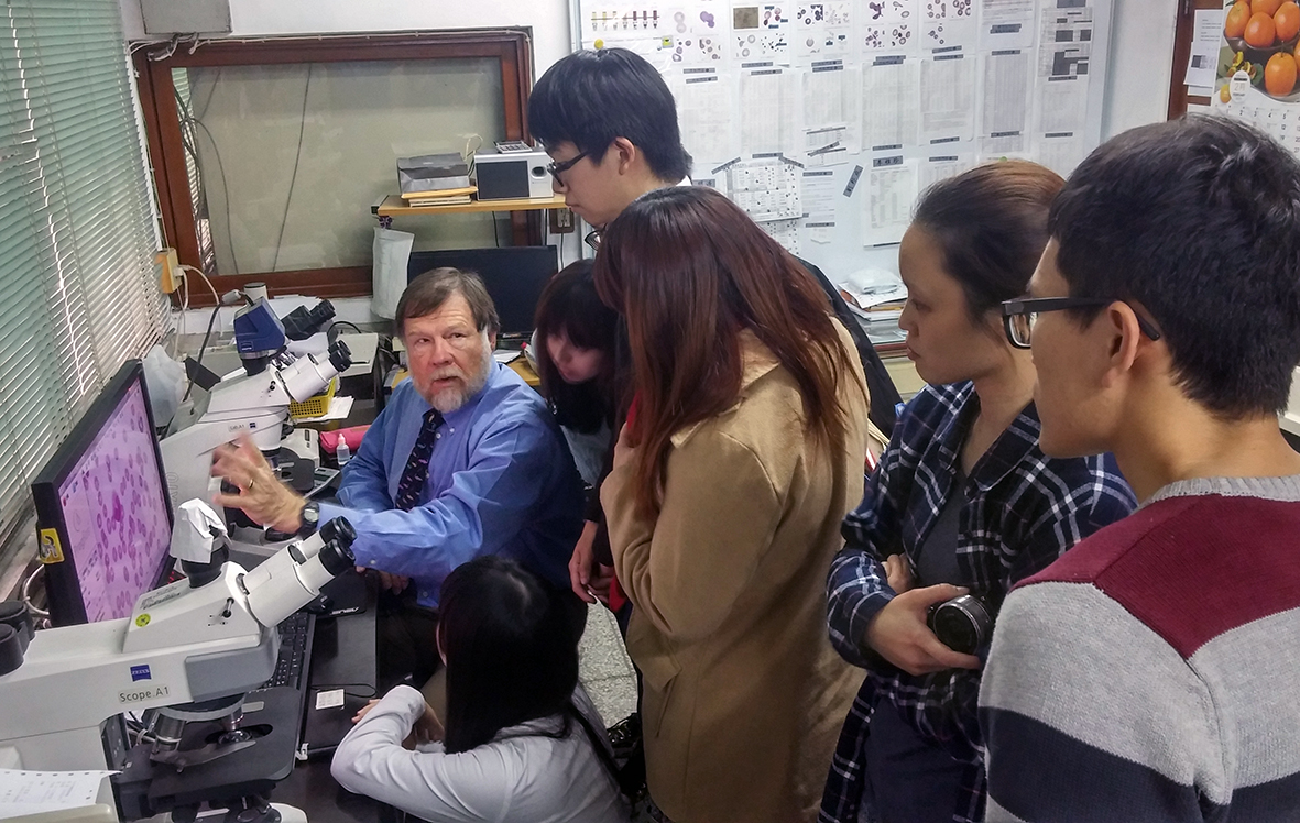 【文/秘書室媒體公關組】國際獸醫權威約翰‧哈維(Dr. John W. Harvey)抵台授課,國立中興大學獸醫學系2月16至3月14日聘請美國佛羅里達大學獸醫學院榮譽教授約翰‧哈維到校開課。約翰‧哈維是多本重要獸醫臨床病理及血液學教科書的作者,同時也是重要血液寄生蟲病源「片狀邊蟲」(Anaplasma Platys)的發現及命名者,這是他首次來台授課,除在興大開課外,也受邀至獸醫學會及獸醫師公會演講。