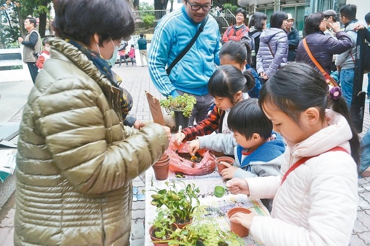 社大「我的小花園」班級師生,在現場也準備種子小盆栽材料,提供小朋友「小手種小苗」體驗活動,搭配兒童科學館蝴蝶特展,讓小朋友們從土壤、昆蟲到羊蹄甲,建立對於健康生態環境的認知。