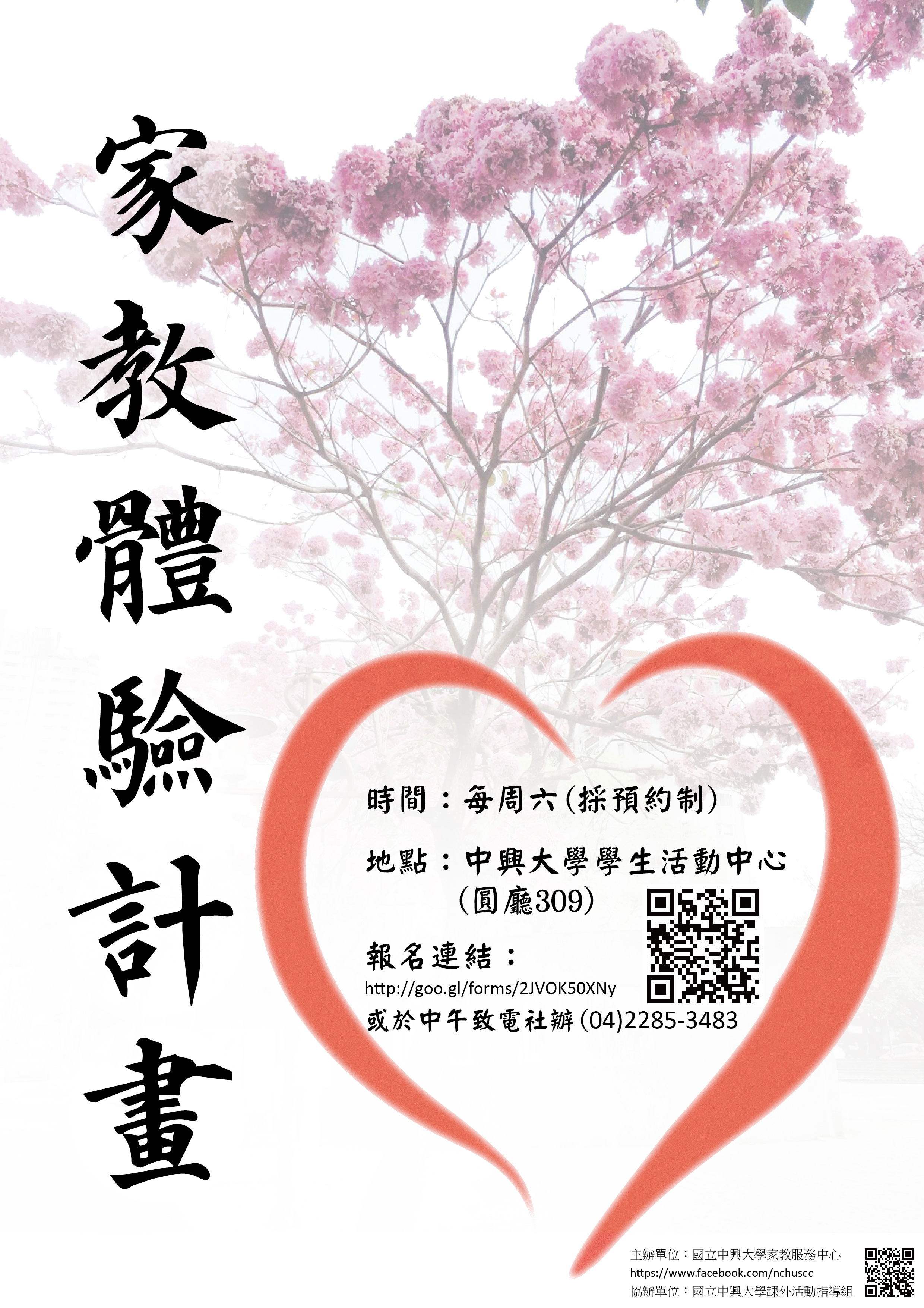 粉絲專頁:國立中興大學家教服務中心 https://www.facebook.com/nchuscc