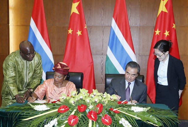 依循這個邏輯,台灣第一次與甘比亞建交是在1968年1月,然後在1974年12月斷交。約隔20年,於1995年甘比亞發生政變後,兩國復交,一直到2013年11月再度與台灣斷交。因為手邊欠缺外交部正式的建交或斷交相關文件,所以不確定台灣是以中華民國,還是以中華民國政府的名義和甘比亞建交。倒是對面那個在「大陸地區」的北京政府,說得比較清楚。王毅先生如是說:「甘比亞政府承認世界上只有一個中國,中華人民共和國政府是代表全中國的唯一合法政府。」非常明顯,北京當局將與甘比亞的建交理解為是甘比亞對北京政府的合法承認。