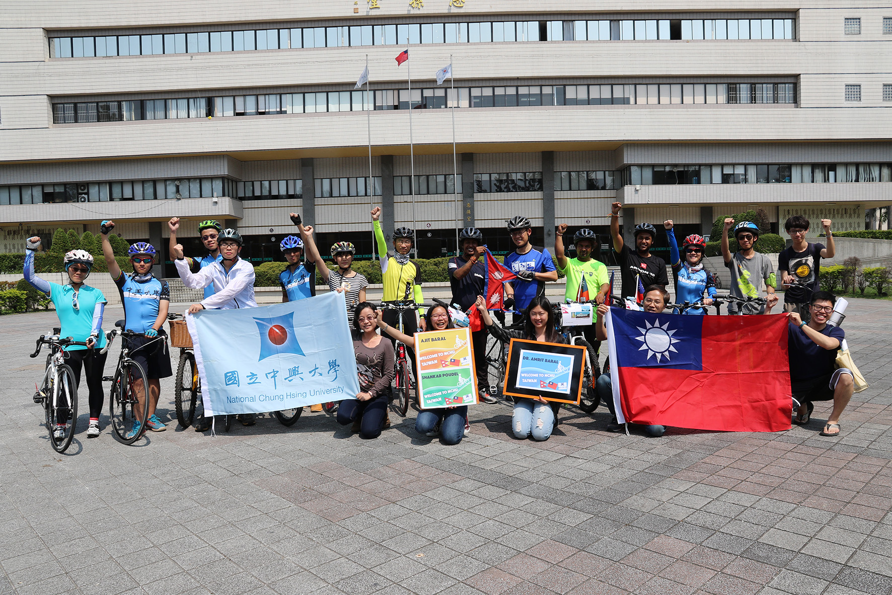 【圖文/媒體公關組】來自尼泊爾的三位青年以單車環遊全球,希望突顯認識愛滋病跟保護環境兩大主題,3月29日抵達臺灣,從臺北一路南下,4月6日抵達中興大學。興大10位師生同騎響應,沿途行經臺中知名景點望高寮、彩虹眷村及臺灣大道,倡導健康及環保理念。