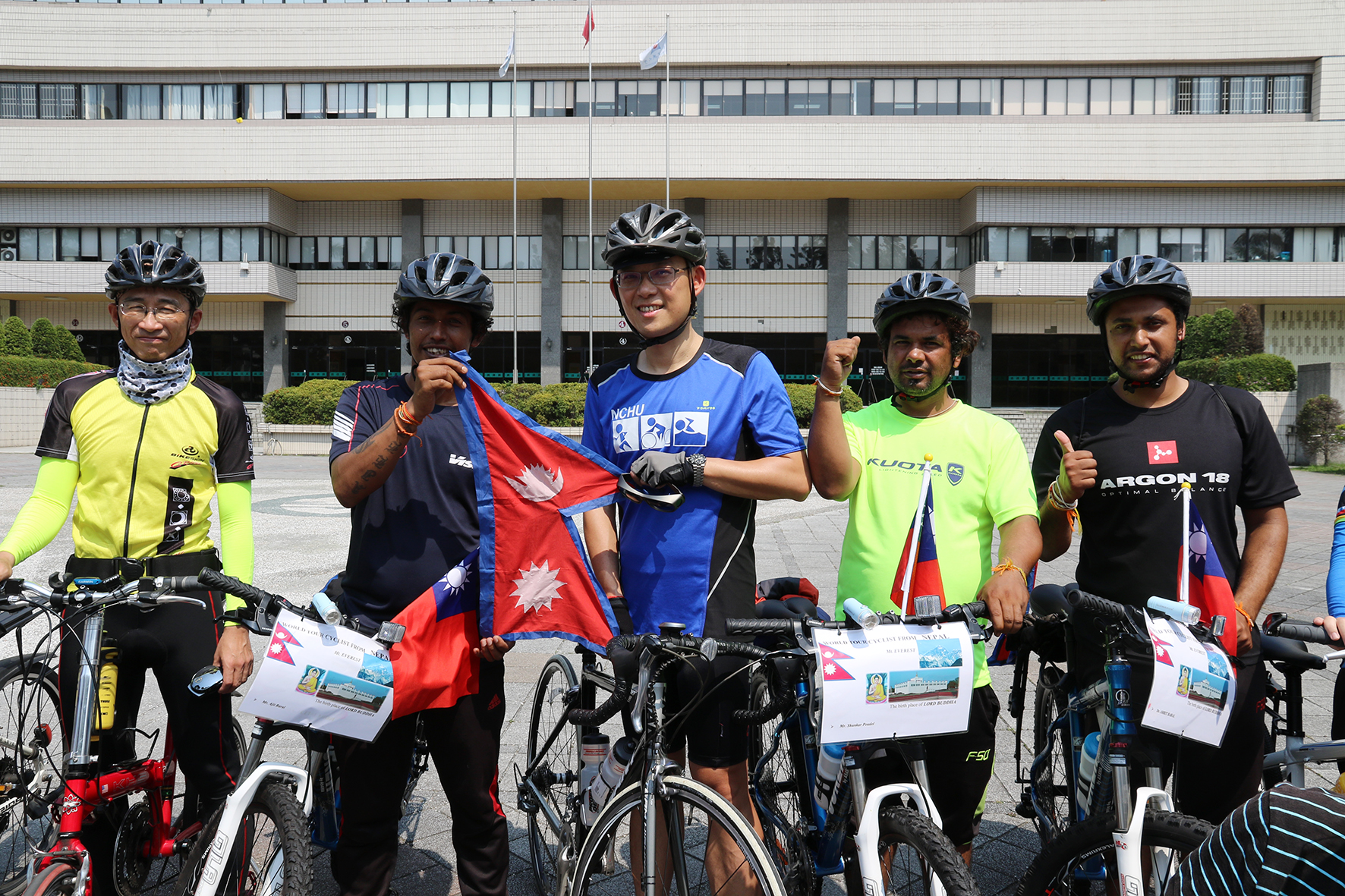 三位尼泊爾青年平均年齡26歲,特別辭掉工作以單車環遊世界,臺灣是他們的第13站。從尼泊爾出發,行經印度、馬爾地夫、斯里蘭卡、緬甸、泰國、寮國、柬埔寨、越南、汶萊、新加坡與馬來西亞,接下來將前往日本與韓國,預計5年內完成環遊世界。
