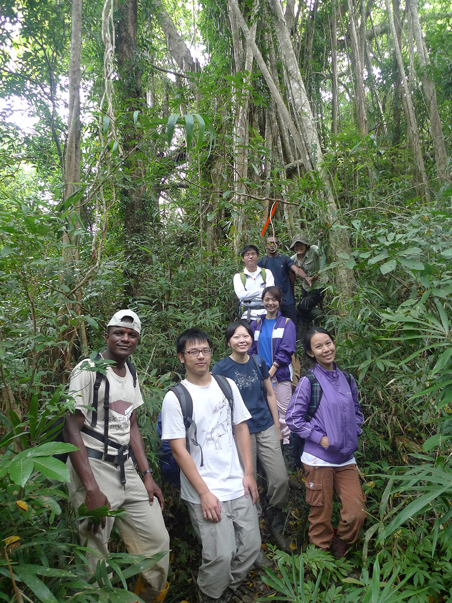 興大農資學院國農碩士學位學程趙國容助理教授參與RAINFOR亞馬遜雨林的研究團隊(祕魯Sucusari森林)。 興大農資學院陳樹群院長(後排左2)、申雍副院長(後排左1)與趟國容老師實驗室國際研究生合影。 中興大學國際農學碩士學位學程的野外訪查(南仁山生態保護區)。