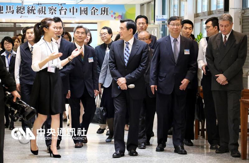 總統馬英九(前右3)14日前往中興大學視察外貿協會 國際企業人才培訓中心(ITI)國際企業經營班,與學 員互動熱絡,學員提問踴躍,馬總統也一一回答。 中央社記者郝雪卿攝 105年4月14日