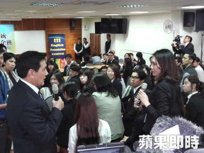 馬英九和國企班畢業學員會座談。蔡智銘攝馬英九總統用英語向國企班學員提問。蔡智銘攝