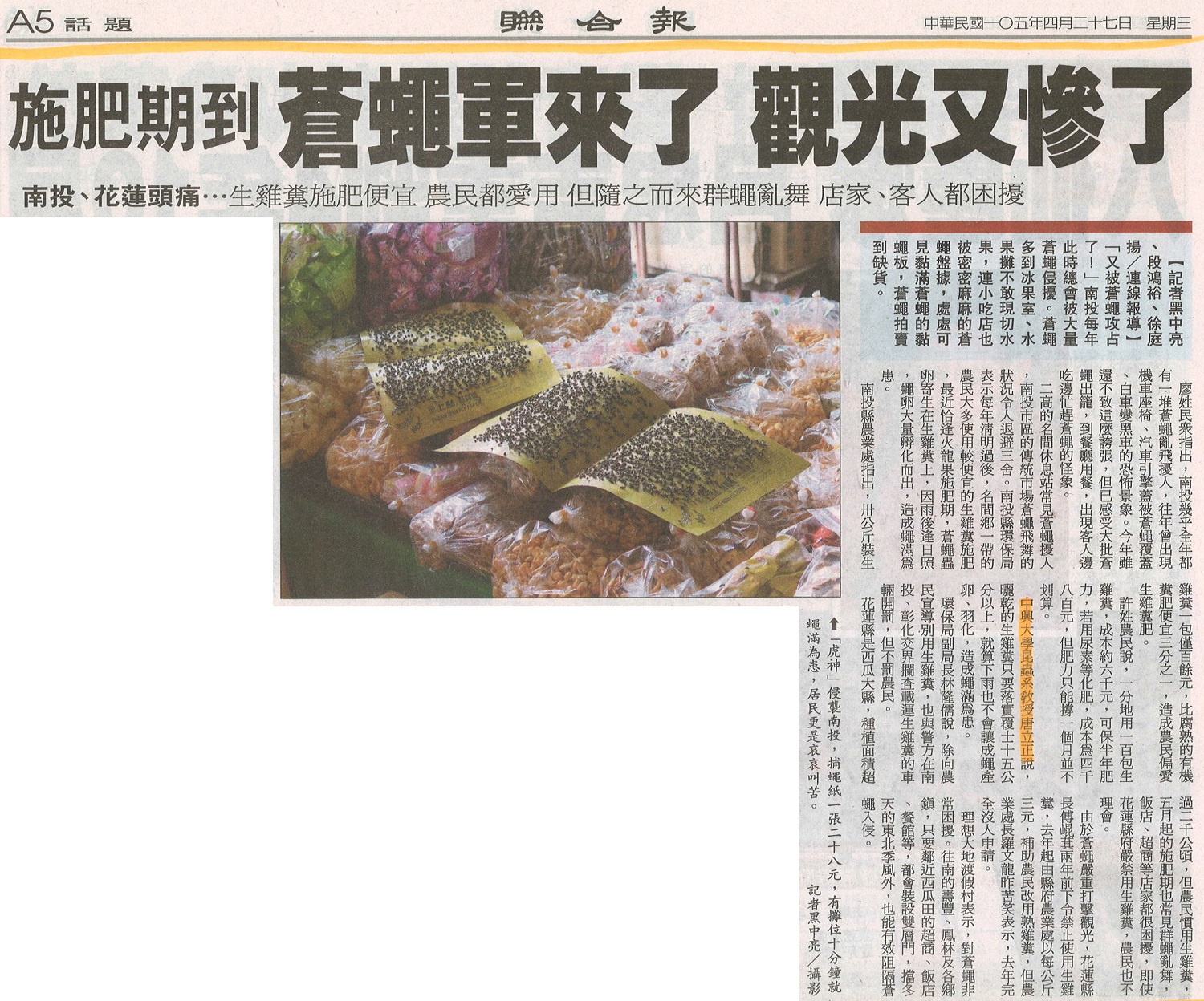 稿源:2016-04-27/聯合報/A5/黑中亮、段鴻裕、徐庭揚