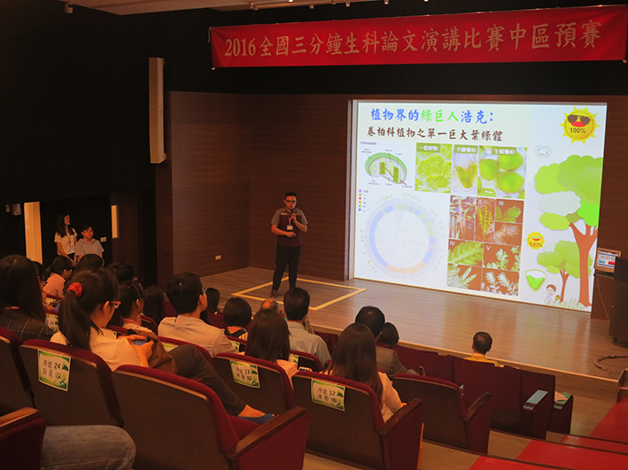 有鑑於很多大學生、研究生發表科學論文,常辭不達意,為推廣生物科學與科技研究、培養學生跨領域溝通的能力,臺灣大學、中興大學、慈濟大學與成功大學四校生命科學院系去年開始聯合舉辦「3分鐘生科論文口說競賽」,今(2016)年更擴大到全國性的比賽,由分處北中南東四區的四校,拓展邀請全國41校參賽,期能激勵學生切磋成長,提升學生表達能力,要求學生3分鐘內將研究說得淺顯易懂。