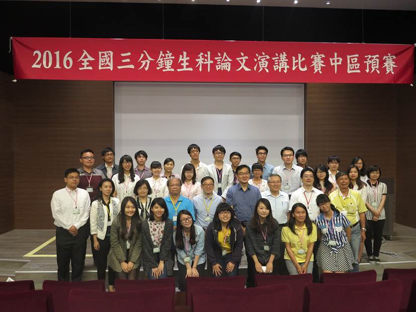 興大5月7日舉辦「3分鐘生科論文口說競賽」中區預賽。 參賽者合影。