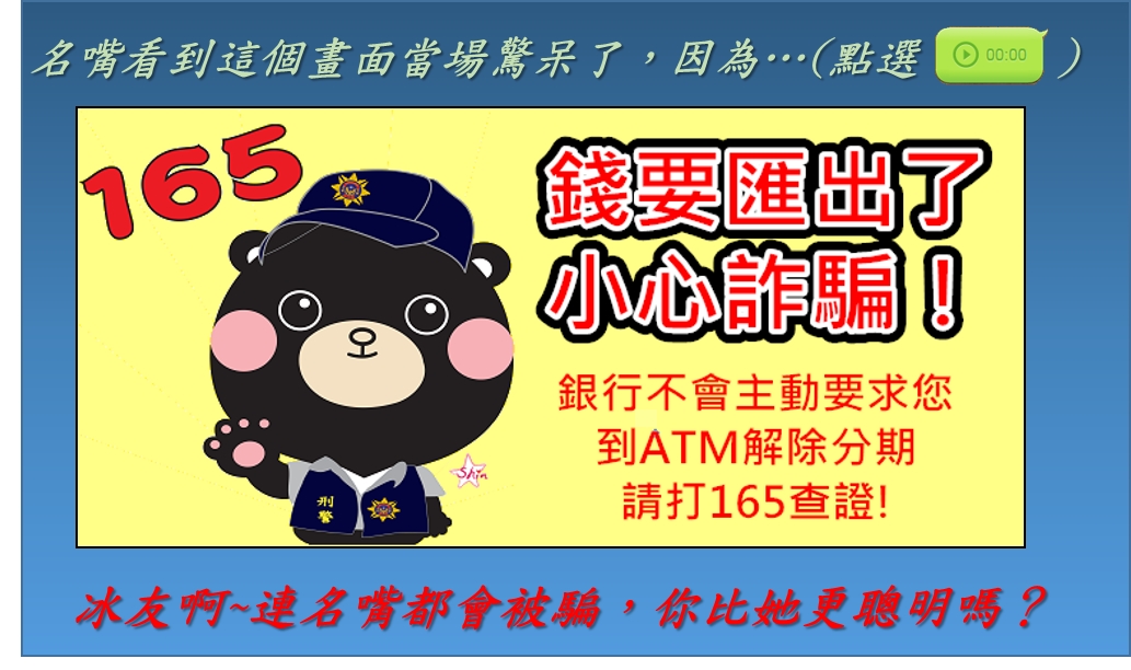 105年5月內政部警政署反詐騙宣導資料,請全校師生及家長詳細參閱,避免受騙損失金錢。