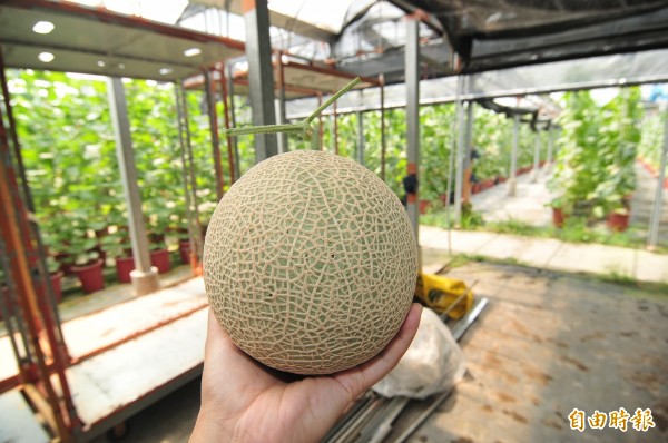 哈密瓜有如手球般。(記者李忠憲攝)