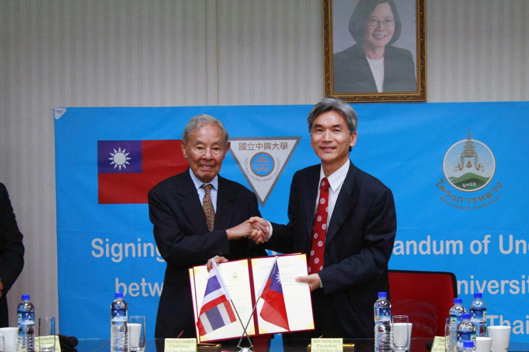 國立中興大學與泰國皇家計畫基金會6月14日簽署合作協議,由興大校長薛富盛、泰國親王畢沙迪(Bhisadej Rajani)共同簽約。雙方首次簽署合作為2005年,當時為國內大學校院與泰國皇室簽署學術合作協議的首例,此次續約希望在雙方長年良好的互動基礎上,進一步深化合作關係。