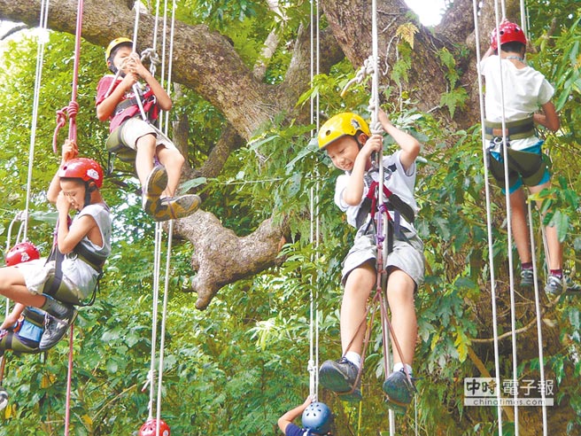 另外極富挑戰性的攀樹(Tree climbing)課程,是探索營隊超人氣的挑戰運動,由攀樹達人蘇俊郎老師擔任授課教練,他是台灣第一領有美國正式專業執照教練,可讓孩子在安全的環境及指導下完成具挑戰性的攀樹挑戰,是訓練孩子勇氣、體力、耐力,培養自信及與大自然共處的最佳野外體驗挑戰。