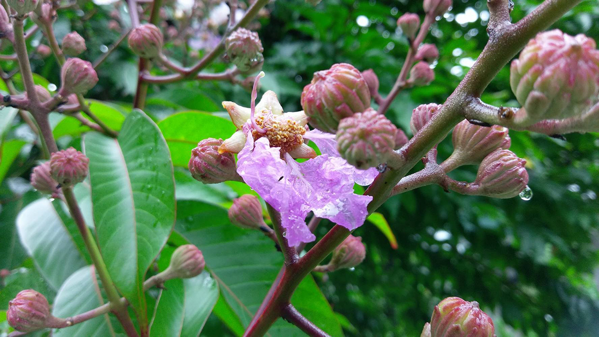 而在研習中心前方有數棵大花紫薇,時值花期,豔陽高照,層層疊疊的花影樹,紫色微燻的浪漫,是您在涉水步道嬉戲後的另一場感官風情,張開大自然雙手,歡迎您的到來。