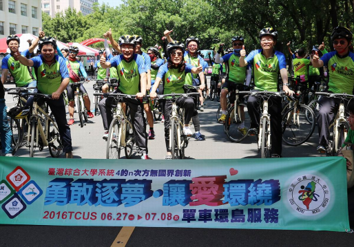 中興大學、成功大學、中山大學、中正大學號召百位師生,發起單車接力環島,送愛給弱勢、偏鄉,以關懷長者、陪伴弱勢孩童、環保淨灘等實際行動,實踐大學生對台灣的關懷。