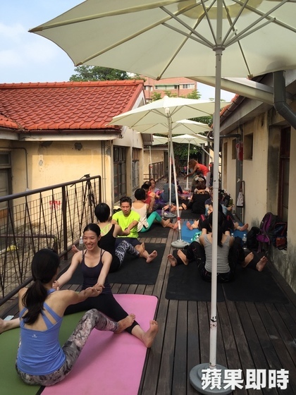 主辦單位今早在二樓的木棧道上約大家「離開地表」做瑜珈。黃任膺攝主辦單位今早在二樓的木棧道上約大家「離開地表」做瑜珈。黃任膺攝