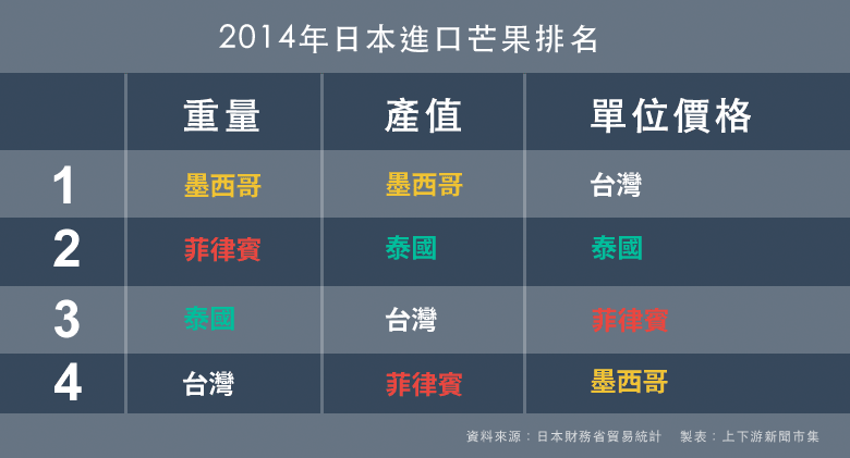 從70年末期到80年中期,外銷數字一直在10噸到41噸間起起伏伏,早期的10噸芒果還被當成中元節禮品贈送給日本八大商社,而不是真正的外銷,直到80年後李念宜擔任青果社社長,主打零售策略,走高端鮮食市場,芒果銷日才逐漸有起色,如今芒果一年外銷日本約有800噸,市占率約10.3%。在幾個芒果銷日的國家中,台灣數量雖然不多,但單位價格卻是最高的。