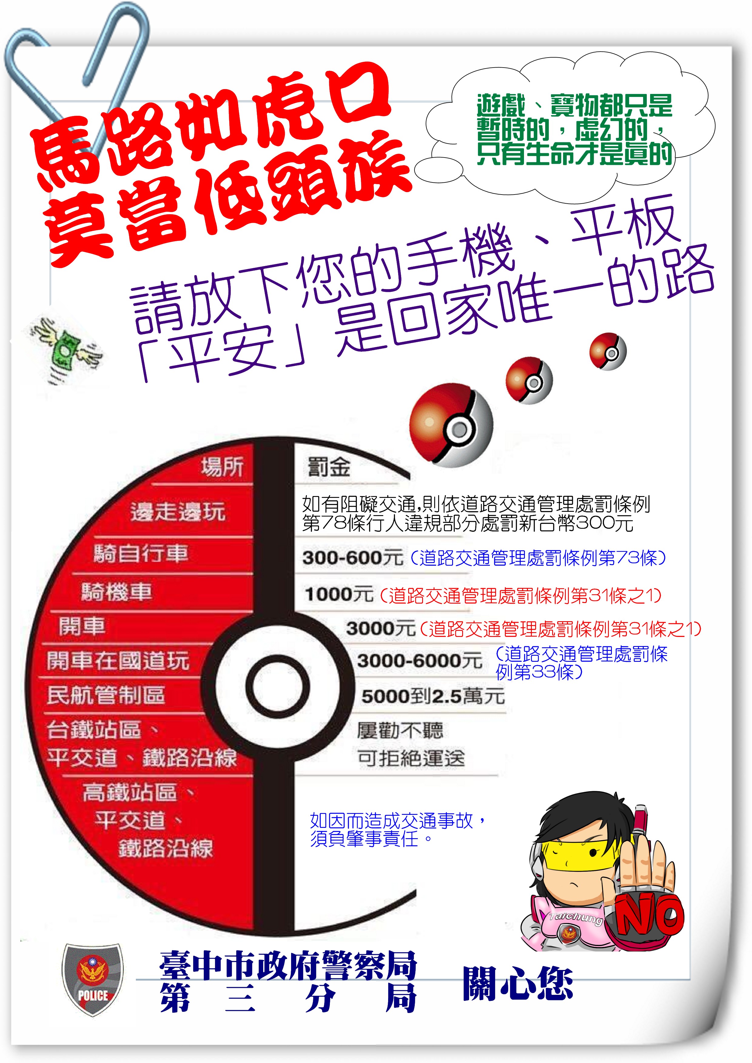 一、鑑於寶可夢(Pokemon GO)線上抓寶遊戲於105年8月6日開放下載後,全臺掀起一波瘋玩抓寶熱潮,衍生許多街頭亂象,亦導致交通事故頻傳,因玩家在行車(走)時手持行動通訊設備遊戲尋寶,不但影響玩家本人行車(走)之注意力,更嚴重危及其他用路人之安全,