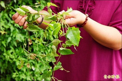 小花蔓澤蘭葉片有特別氣味,動物不愛吃。(記者花孟璟攝)