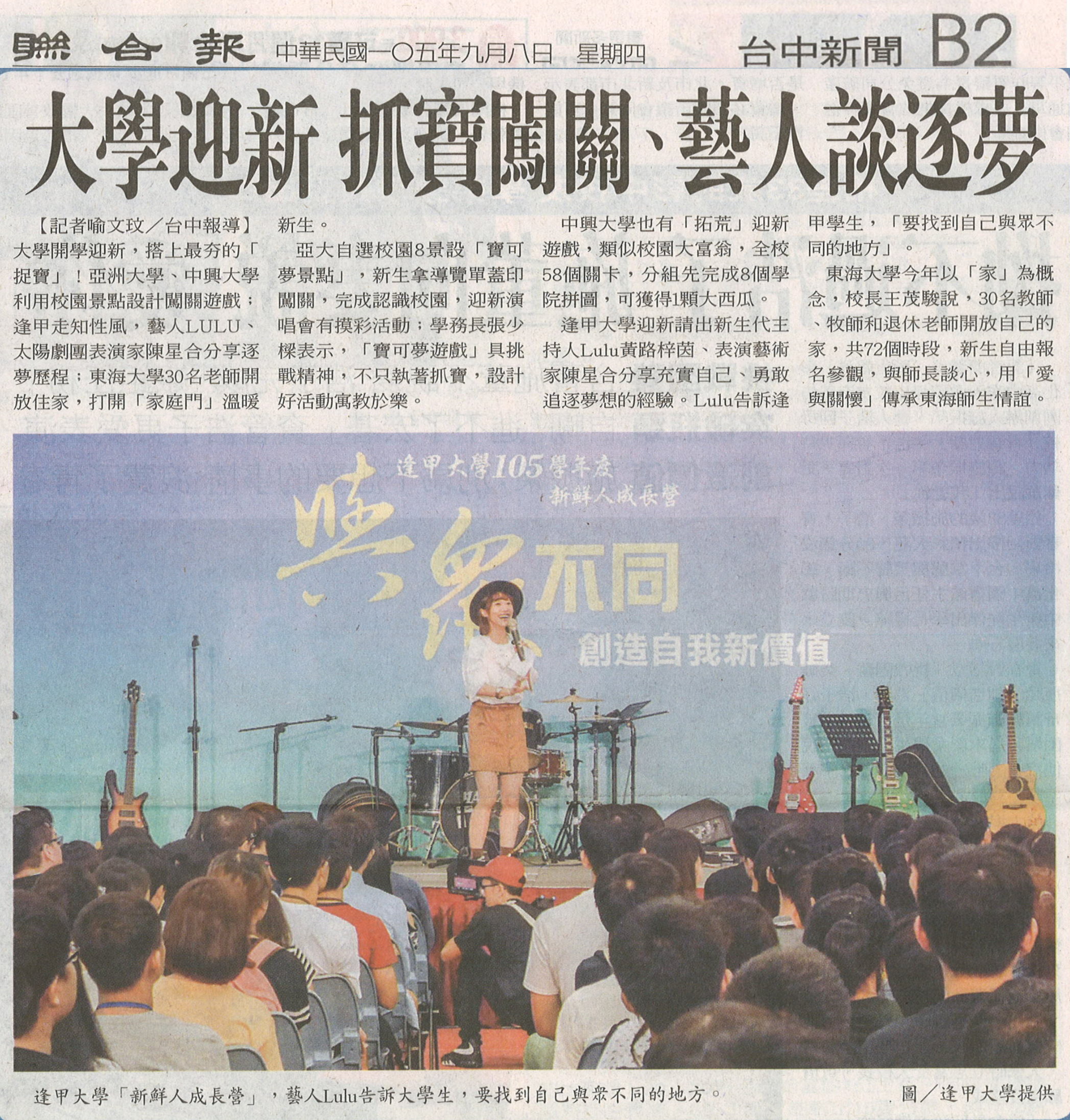 【媒體報導】大學迎新 抓寶闖關、藝人談夢想