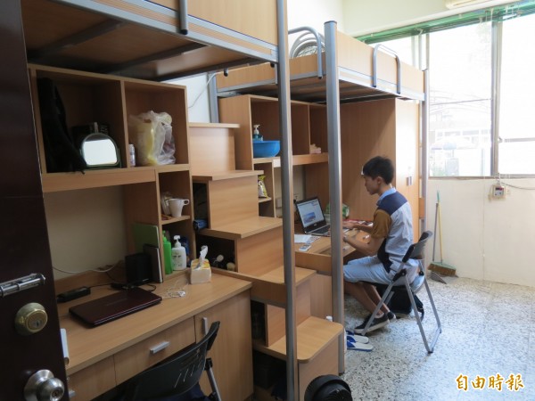 幸運入住新宿舍的土環系大三生李祐任說,舊宿舍最難適應的是水泥床,又硬又冷且上下鋪設計,書桌更採長排設計,室友排排坐,均易相互干擾,既不人性化也極不便,新房間感覺有了溫度,總算讓他有「家的感覺」。