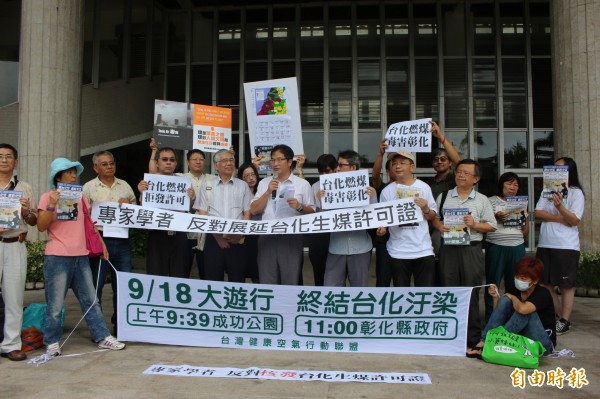一群教授學者今天站出來加入環團反對縣府核發台化燃煤操作許可證的行列。(記者張聰秋攝)