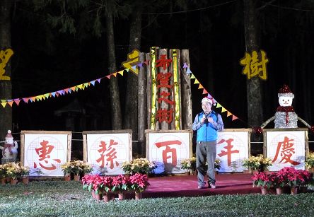 在原住民歌舞表演中,興大惠蓀林場點亮希望之樹,盼透過LED星星光亮,照耀下一個百年。(林欣儀翻攝)