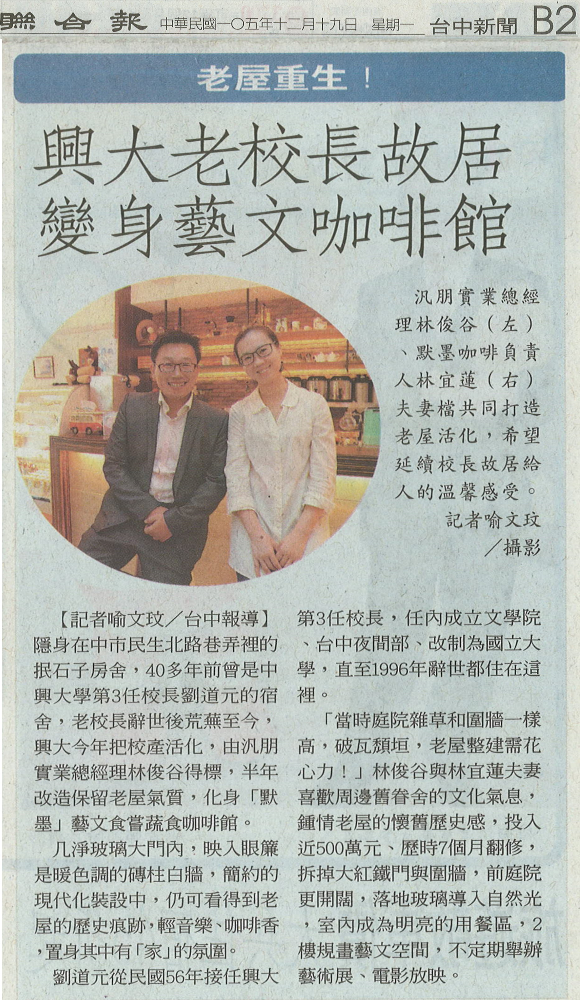 【媒體報導】興大老校長故居 變身藝文咖啡館