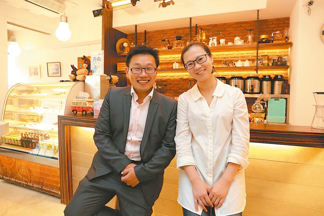 汎朋實業總經理林俊谷(左)、默墨咖啡負責人林宜蓮(右)夫妻檔共同打造老屋活化,希望延續校長故居給人的溫馨感受。