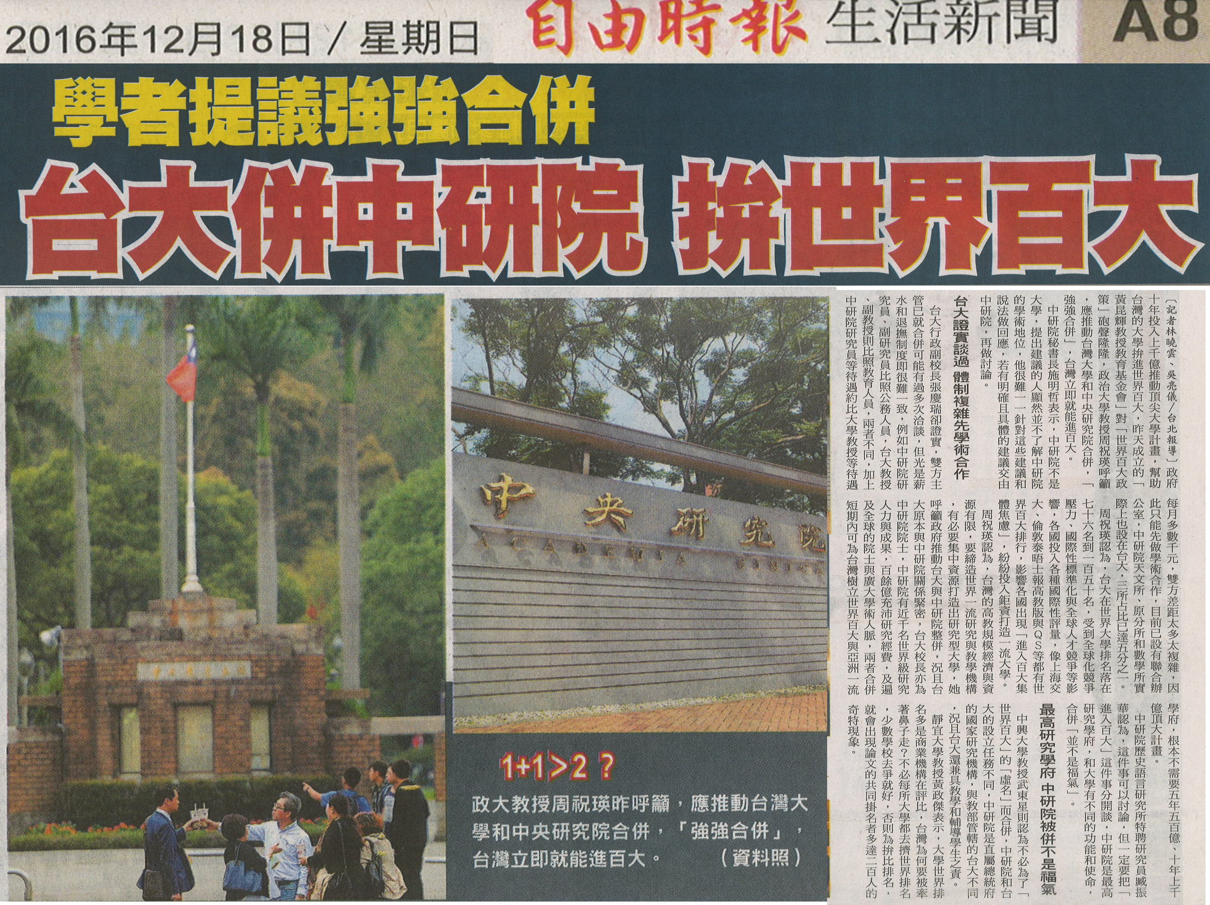 最高研究學府 中研院被併不是福氣