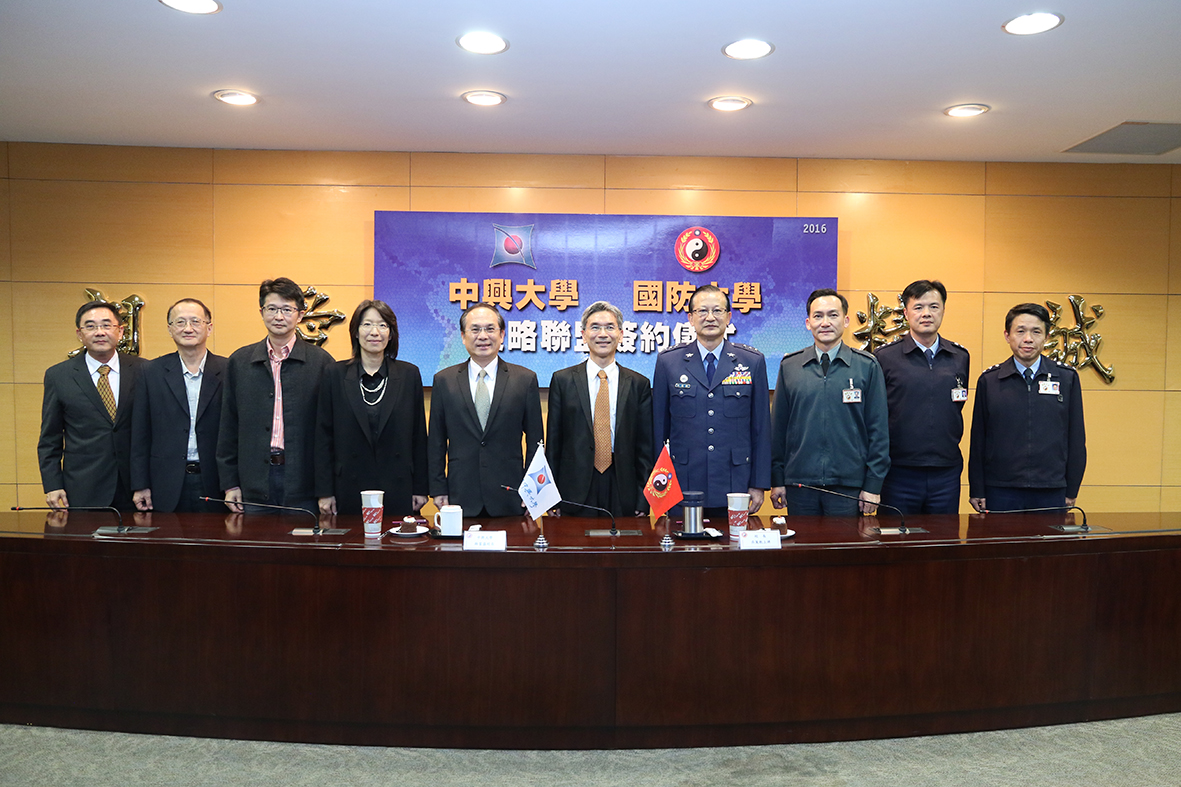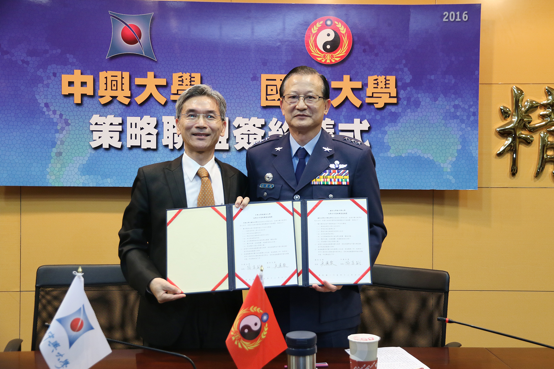 為促進學術交流與研究合作,國立中興大學與國防大學26日簽訂策略聯盟合作協議,由興大校長薛富盛、國防大學校長吳萬教上將代表簽署,雙方將針對人才、課程、圖書、設備、技術等學術資源進行交流,共同推動建立人才培育與產學研發機制,打造高等教育關鍵競爭力。