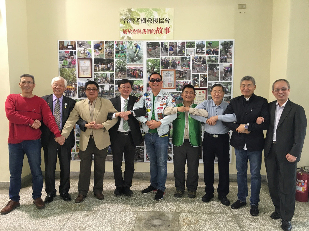 台灣老樹救援協會理事長吳春山(中)與理監事攜手,兩年來在全台各地成功救治210棵老樹。