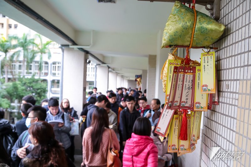 學測當日(20)成功高中考場外高掛粽子的裝飾物及考生的許願籤。六日兩百多位高中校長及主任連署投書媒體呼籲大學招聯會「教完再招生」,高舉「讓學生完整學習」大旗(圖/顏麟宇;文/賴彥丞)
