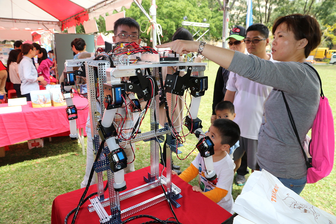 興大指出,不少系所除有專人解說導覽外,也展出學生實作的模型或成果,如動物科學系展示鸚鵡、雞、蛋、羽毛等標本;機械系展示智慧型溫控雷射3D列印機、舞獅機器人;土環系展示環境奈米材料應用於農業及環境之成果,包含植物保護製劑、抗菌壓克力、除臭壓克力等;電機系展示新式無線感測電動車輛煞車設備、智慧型機械手臂等。民眾還可參加闖關遊戲,有機會獲得精美小禮。