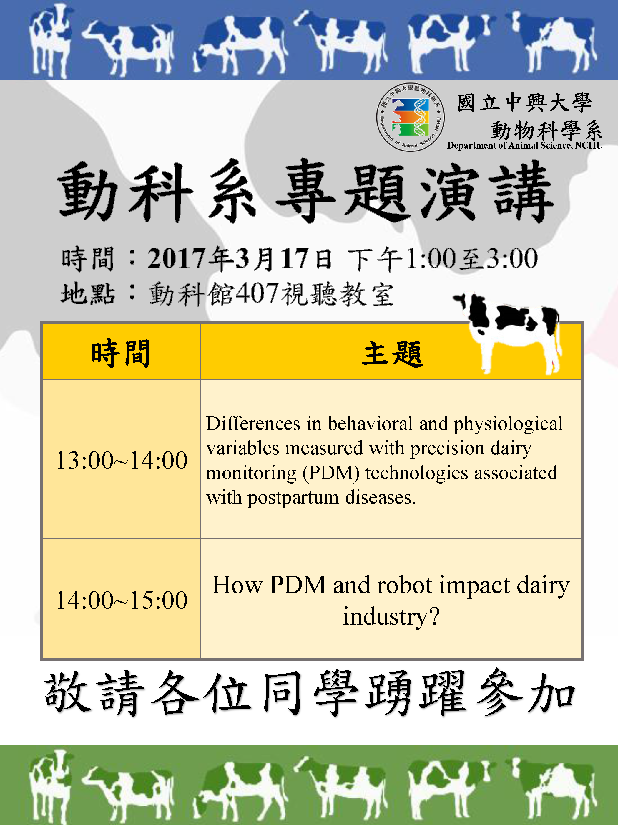 【動科系專題演講】利用牛隻上佩掛的無線偵測器來達到精準的乳牛健康管理