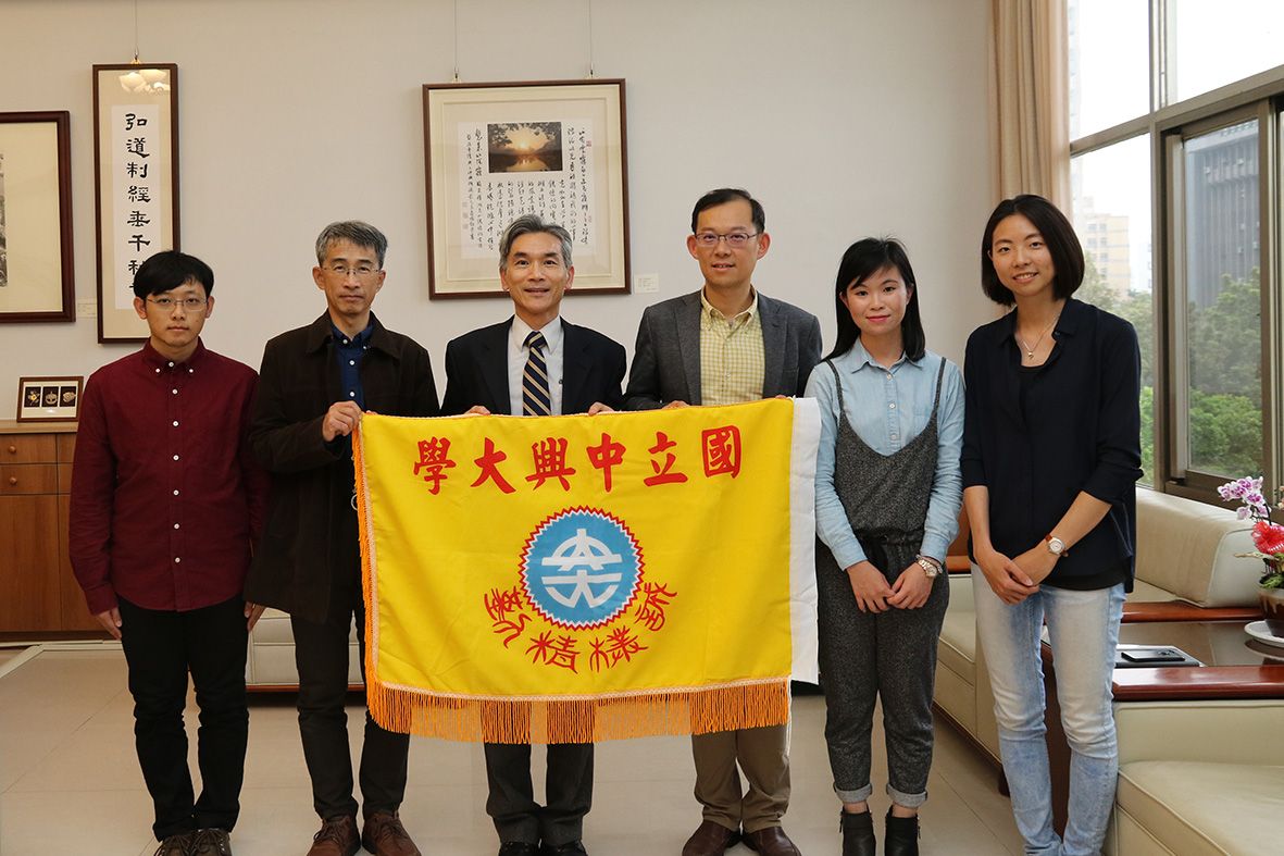 興大校長薛富盛(左3)授旗給興大日本參訪團。