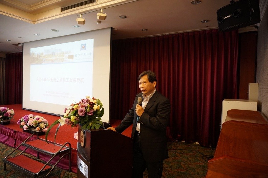 國立中興大學陳政雄教授在社群成立大會中主講「因應工業4.0智慧工具機的發展」專題。 精機中心/提供