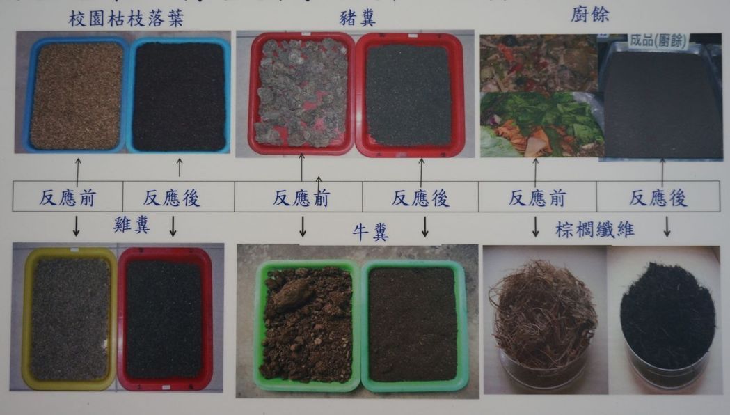 中興大學校園內的枯枝落葉,採用楊秋忠的木屑快速醱酵專利技術,快速變成有機肥,不但使垃圾減量,成功開創「大勇肥」有機土品牌,興大因此獲得2015年台中市資源回收垃圾減量第一名績優校園。