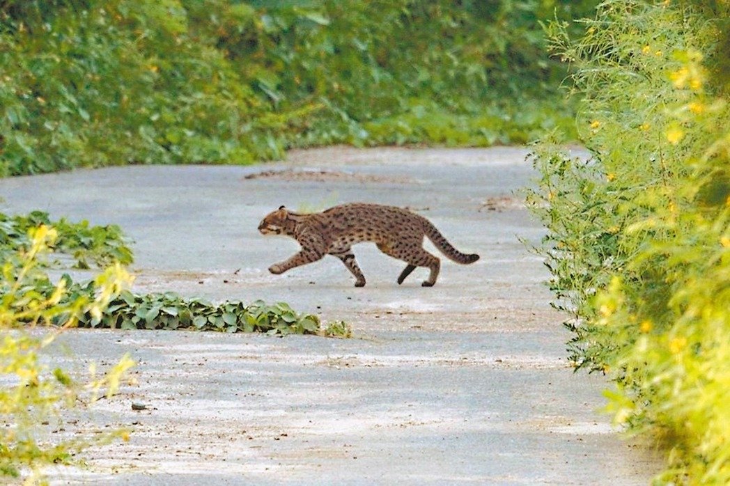 石虎在台瀕臨絕種。圖為生態攝影家二○一四年在苗栗山區拍到野生石虎身影。 圖/王小明提供