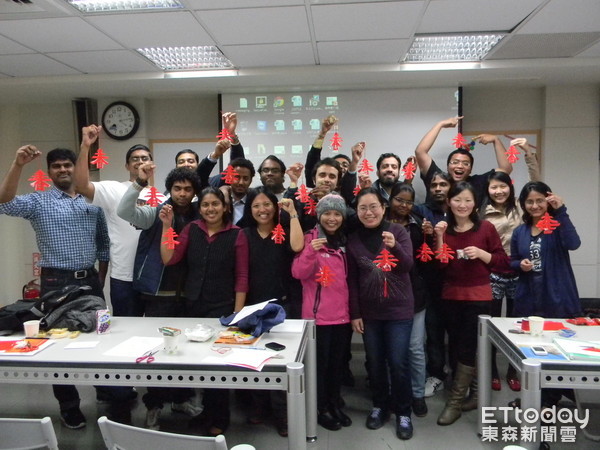 幾位來台的外籍留學生開心地上中文課,也學習剪春聯。(圖/Suranjith提供)